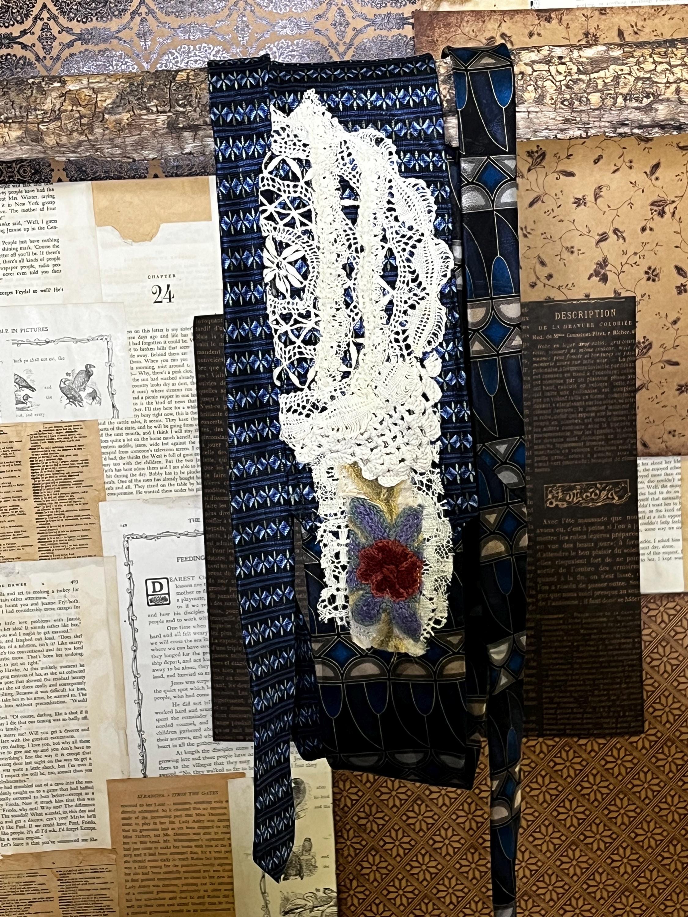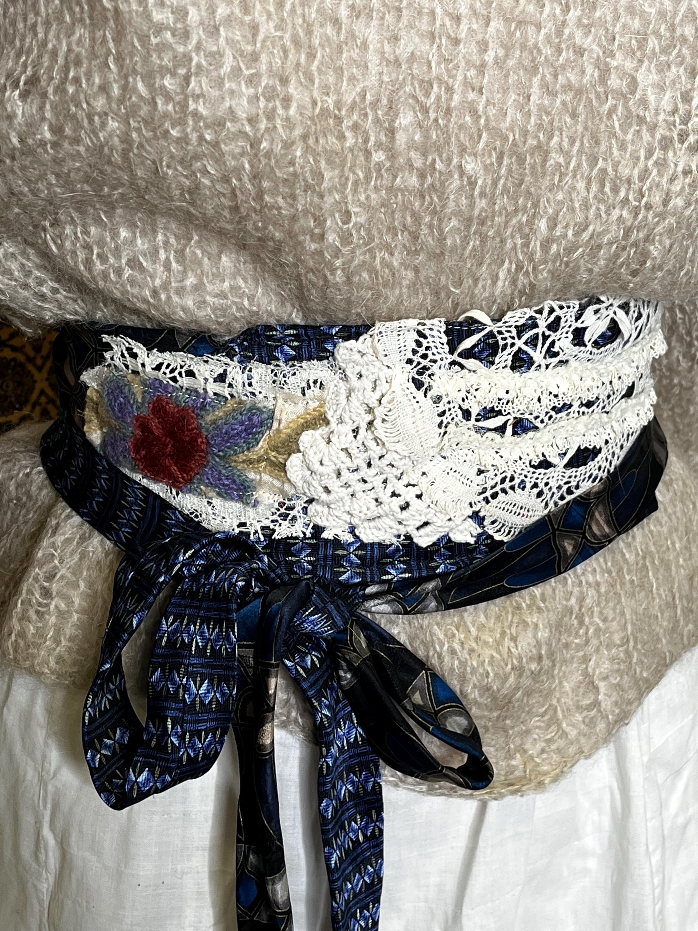 • Upcycled vintage silk ties, vintage trims